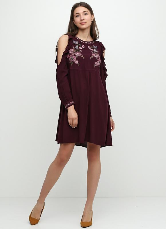 Платье с открытыми плечами и вышивкой, цвет бордовый, состояние идеальное, длина 96см