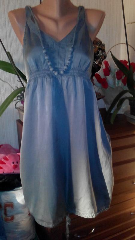 Практично невагомий сарафан,склад найкращий на літо(шовк і бавовна).Дуже стильна і якісна річ.Длина84,Ог48,Об59.