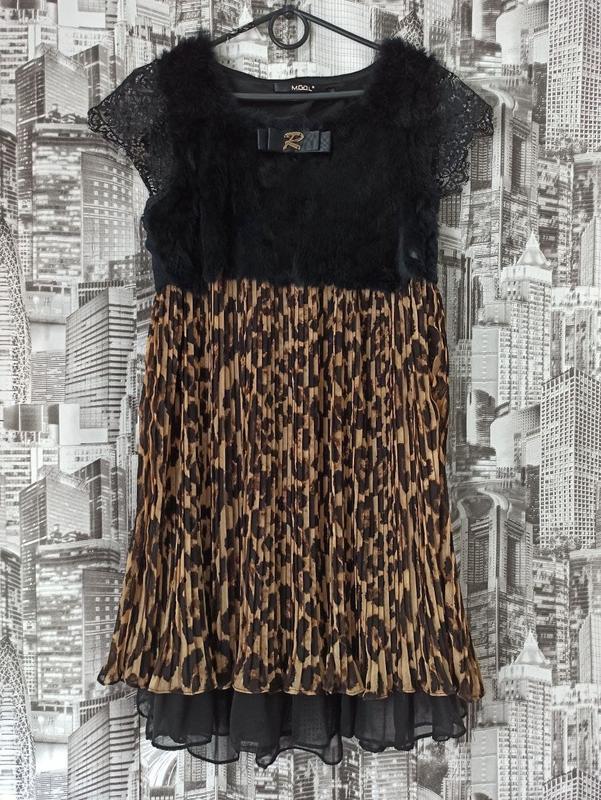 Нарядое сукня в ідеальному стані. Силует сукні вільний, є під'юбник. Низ сукні модного забарвлення, плиссерованный, шифоновий. Верх-хутра. Це поєднання тканин надає сукні і ошатність та елегантність і легкість. Заміри ПОГ-45см, довжина від плеча-87см, полуобхва талії-45см (завищена лінія талії),