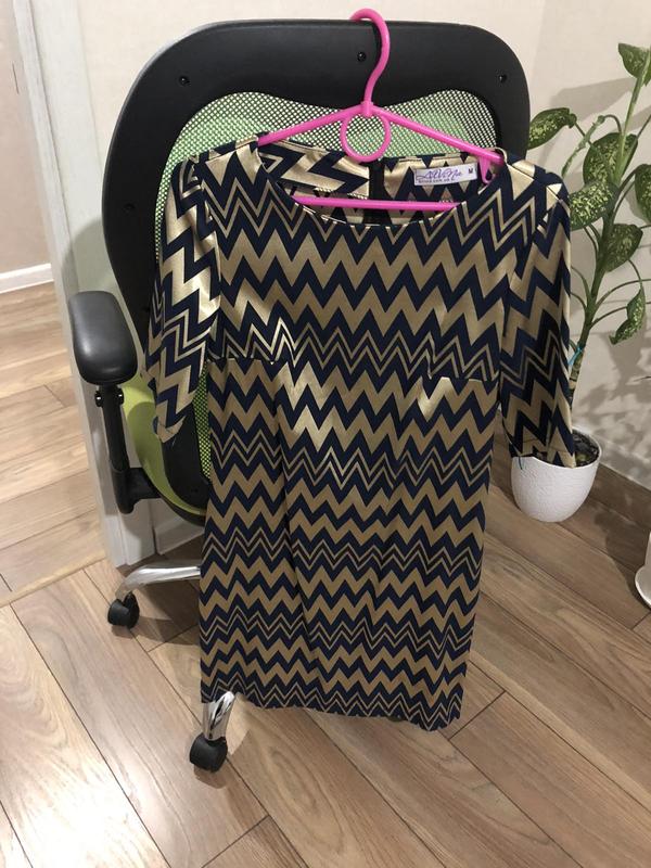 Сукня класична повсякденна. Довжина вище коліна. Горловина кругла.Рукав вшивний прямий, довжина 3/4. Застібка-"блискавка" металева по центру спинки.стан ідеальний.