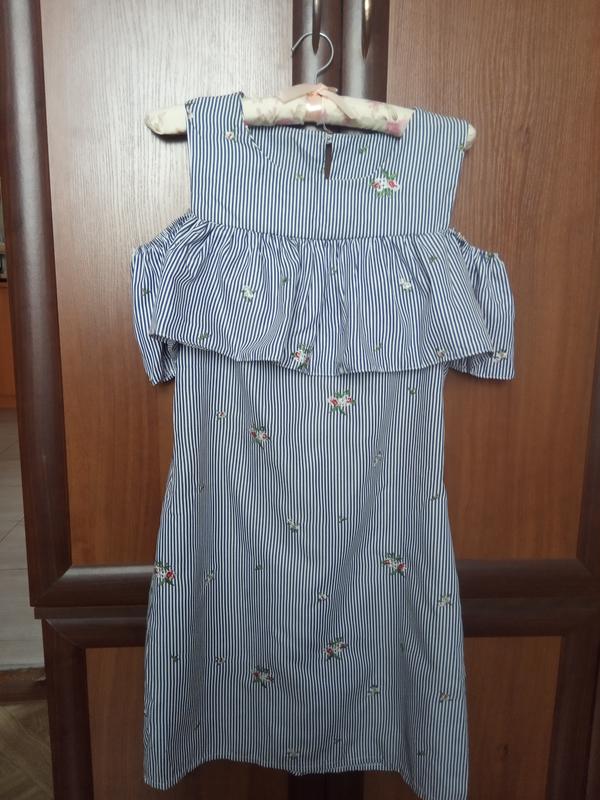 літнє плаття в синю смужку з вишивкою. Можна носити в двох варіантах. Є по боках потайні кишені. Всі заміри і додаткові фото надам в особисті повідомлення.