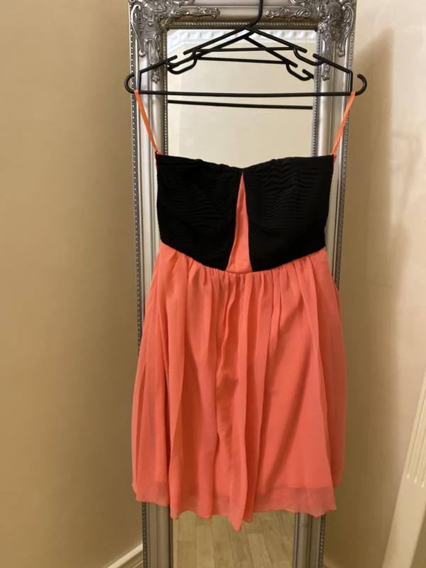 Шифонове плаття коралового кольору з відкритими плечима.