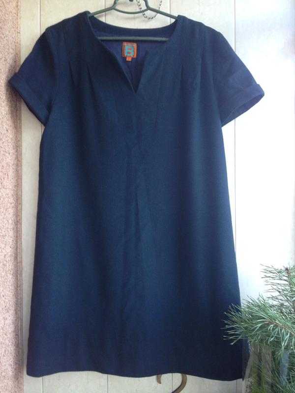 Вовняне плаття синього кольору ,прямого крою . Плечі 39,ширина грудей 52,довжина рукава 18,довжина виробу 87,стегна 56.Bensimon.