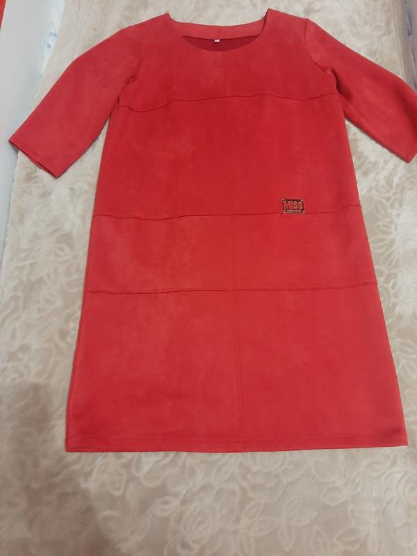 Очень красивое стильное платье,прямого пошива,ткань натуральный замш качество супер! Длинна изделия - 86см рукав- 39см шырина-50