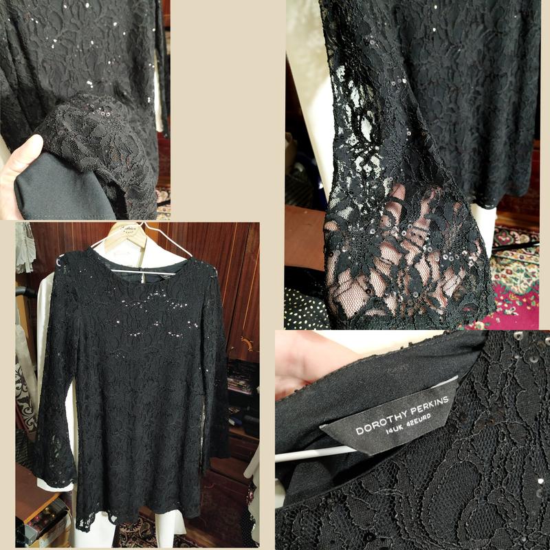 ❤️мини платье ажурное в пайетки, рукав клеш, есть подклад фото на модели похожего платья!!! ☑️ Размер- 14 Пог 47-51, поб 49-54, длина 85, длина подклада 80, рукав 63,5 ☑️ Бренд- Dorothy Perkins ☑️ Состояние- идеальное Фото на теле не делаю!!!