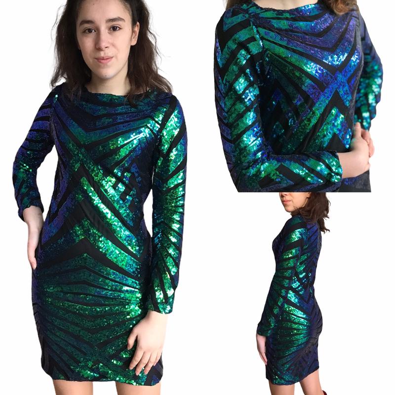 Ціна знижена🔥550грн Дуже гарна сукня, розшита паєтками, якість люкс! Переливається зелено-синім кольорами. S: ПОГ 42см, ПОТ 35см, ПОБ 43см, довжина рукава 57см, довжина 94см L: ПОГ 44см, ПОТ 37см, ПОБ 45см, довжина рукава 57см, довжина 94см