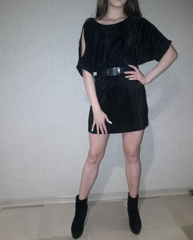 короткий плесированное сукню. довжина виробу 77 см П. Про талії 43. тягнеться. Можна носити з поясом і без. Фото не передає справжню красу виробу.