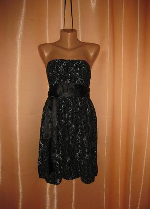 Элегантное приталенное черное платье Select, 10р, км0807 открытые плечи цвет черный с серебристыми цветами, с подкладкой подъюбником, указанный размер на изделии – 10, все данные на бирках модное, кокетливое и элегантное платье, простое и нарядное, с акцентами на талии, с интересным цветочным принтом и необычной кружевной тканью, с длинным атласным поясом, который можно завязывать в большой бант сбоку или сзади. Состояние хорошее – нет повреждений, нет разрывов, нет пятен, возможны небольшие затяжечки около 1-2мм и все. замеры в нерастянутом состоянии: полуобхват талии 37 см не тянется, полуобхват груди 39 40 см и тянется, полуобхват бедра 63 см и тянется, длина изделия 65 см. " Если вас интересует какая-нибудь вещь, но есть сомнения или вопросы, то пишите. стараюсь всем ответить. смотрите все объявления. при покупке двух (сразу или в течение месяца) или более вещей возможны скидки до целых 20-50%!! АКЦИОННАЯ ДОСТАВКА + ✔✔✔ отправим любой службой доставки по Вашему выбору. !Для того чтобы была акция-доставку нужно оформить Вам на сайте через кнопку купить "