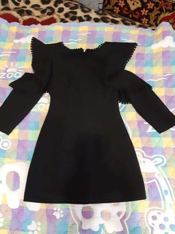 Продам нарядне маленьке чорне плаття!) Нове. Дуже класне, рукав три чверті, плечі оголені. Розмір 40-42 на маленьку худеньку дівчинку. Матеріал костюмка, дуже щільний і практично не мнеться.