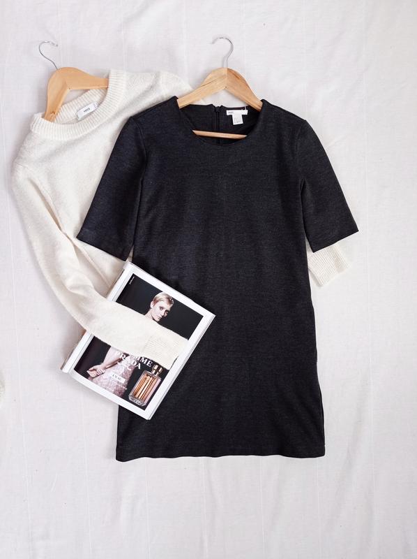 сіре плаття від H&M з бічними кишенями, ззаду на замку, крій А силуету, тканина плотний трикотаж, добре тримає форму, розмір S, ширина плечей 37 см, грудей 47 см, довжина 85 див. Стан нової речі