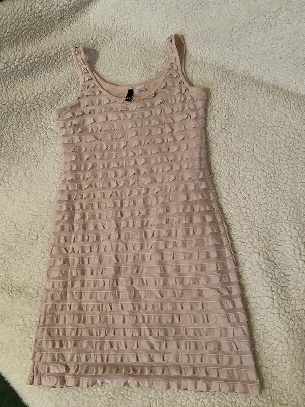 Платье очень приятного качества, стрейчевое, садится по фигуре. Цвет нежный , бледно- розовый Бренд H&M Размер S