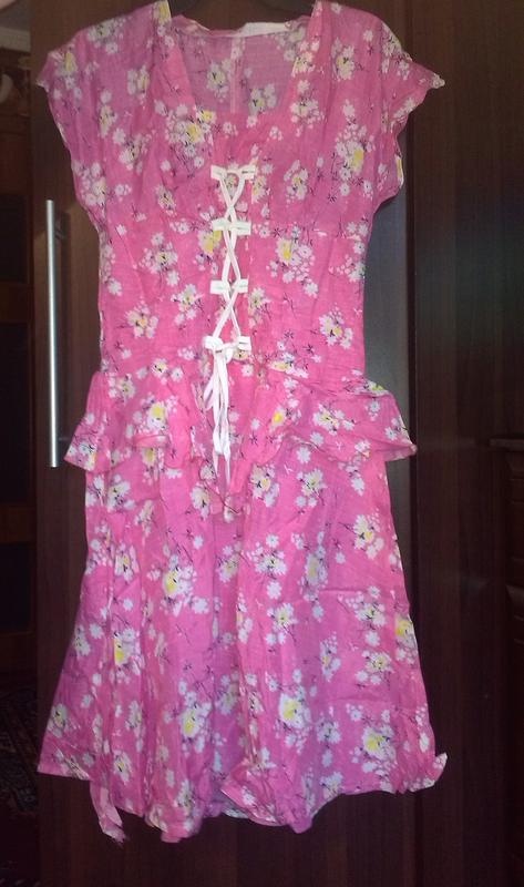 Ситцеве плаття рожеве з рюшем. Дуже ніжне. Спідниця розкльошена, довжина по спинці - 96, ОГ 37. ТАЛІЯ 32