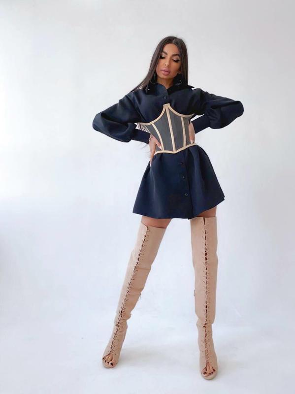 👆Комплект: сукня-сорочка з прозорим білизняним корсетом на шнурівці. Розмір універсальний S/M Тканина: креп-костюмка корсет в комплекті ❌Корсет можна придбати окремо! Чорний і бежевий