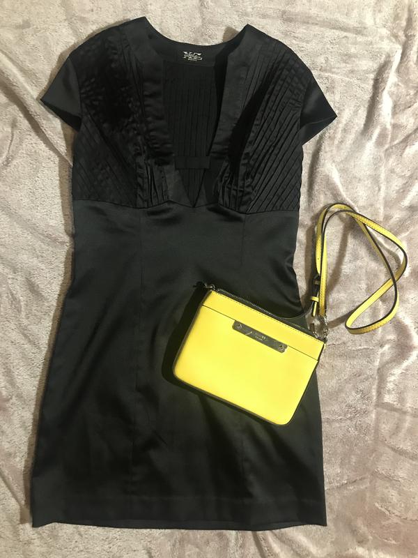 Маленьке чорне плаття з щільного атласу, розмір 44, в ідеальному стані. Дуже красива драпірування на грудях.