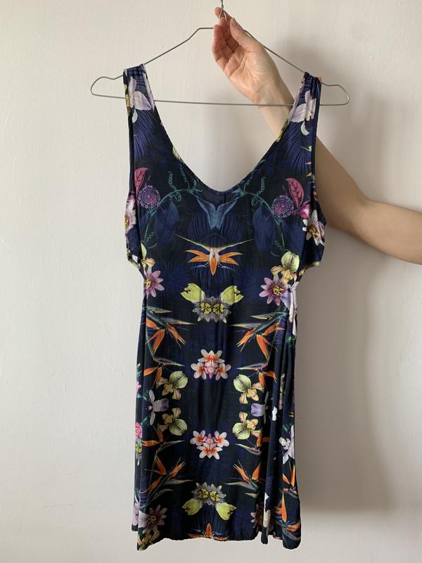 Сукня має розрізи по боках, трішки розширена.