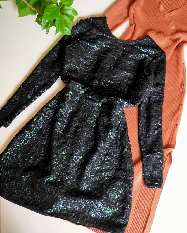 сукня в паєтки H&M розмір 10 пог 46 см пот 36 см побіди 48 см довжина 84 см рукав 54 см