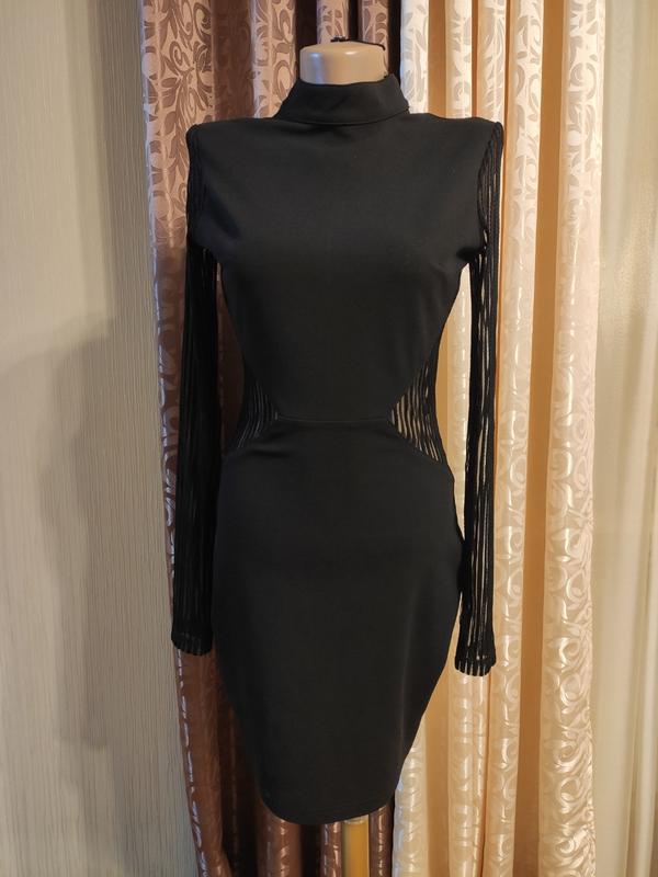 Миле чорне плаття з оригінальними вставками. На спинці блискавка. Заміри на фото. Трохи тягнеться.