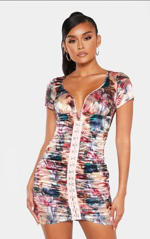 Сукня міні у квітковому стилі з імітацією застібок спереду і V-образним вирізом в середені із залізною вставкою! PrettyLittleThing Розмір UK6/XS, S EU 34 Довжина 80см ОГ 37см ПРО 39див по талії 29см