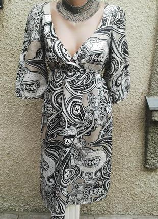 Лляне плаття під пояс в етно,східний принт "огірки",льон 100%,підкладка-бавовна 100%
