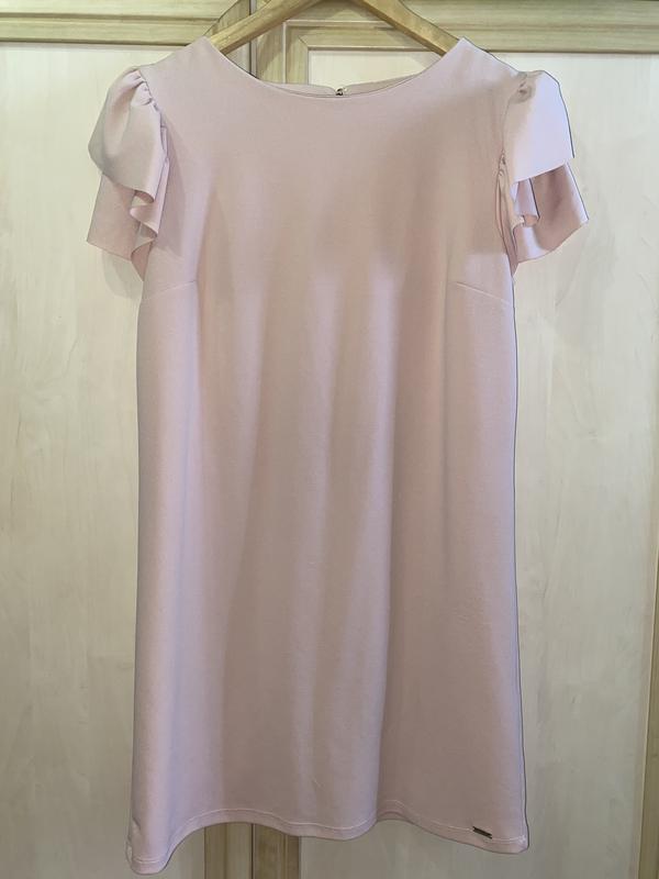 Акуратне ніжне плаття прямого крою з об'ємним рукавом