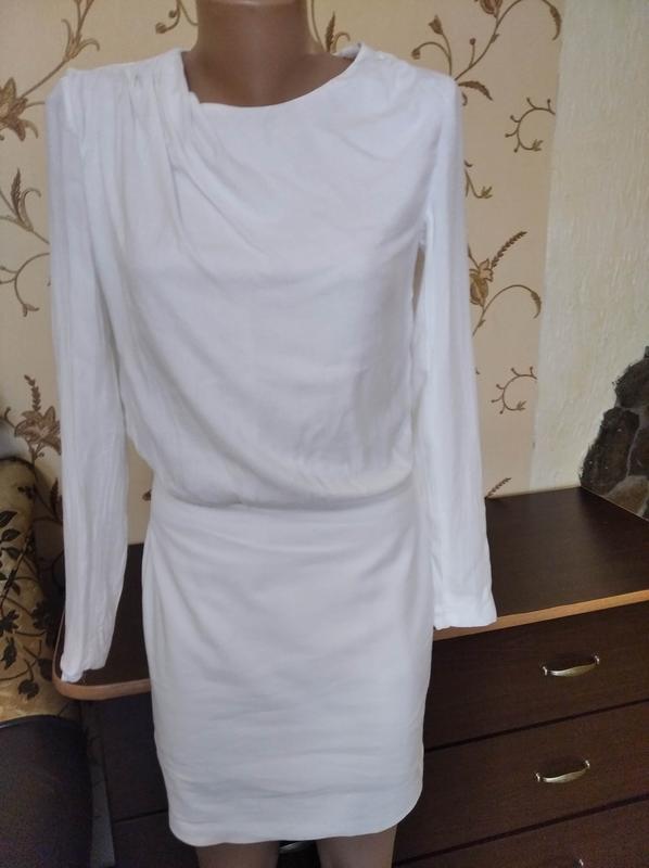 Колір ледь молочний.Дуже красиве вживу.Верх тонкий,низ плотний,ледь тягнетьсяЗаді до половини спідниці замок.Довжина 85 см,рукав 58см,плечі 36см,ПОТ - 36см,ПОБІДИ - 45см.