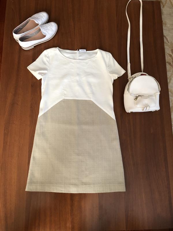 Сукня ПОЗА МОДИ ✔️фасон легка трапеція. ✔️100% натуральний склад ✔️біла частина - льон і бавовна ✔️бежева з блискучою ниткою частина - коттон, ✔️фактура бежевою частини як рогожка. ✔️бежева частина красиво мерехтить на світлі, фото не передає ✔️відмінно сидить, за рахунок підкладки трохи коригує фігуру, так як підкладка тримає форму. ✔️Ідеально шатенкам і брюнеткам ✔️підходить під всі види взуття: босоніжки, лофери, грубі світлі черевики, кросівки, під каблук або низький хід. ✔️стан ідеальний.