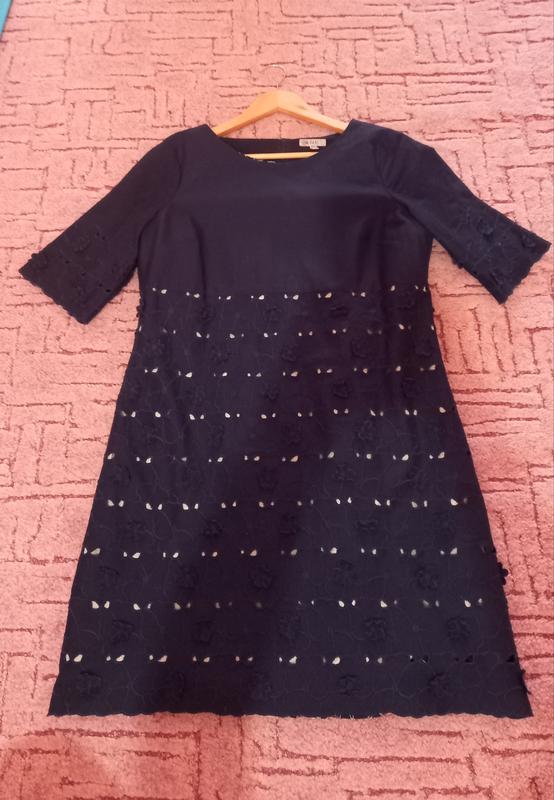 Синее прямое платье, подкладка, короткий рукав 33см, длина 90см, грудь до 100см, бедра до 105см, сзади молния