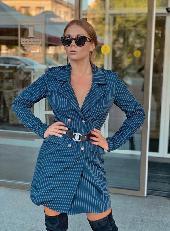 Можна носити як піджак-кардиган так і як сукня-піджак 🍀 Виріб вільного крою, подовжений, на підкладці з підплічниками, з боків кишені, застібка на два гудзики і 2 декор Прекрасний варіант для повсякденного образу, ідеально поєднуються з різними стилями і одягом Підходить як до класичного стилю так і до кежуал Тканина: класична костюмна тканина смужка Прекрасний варіант для повсякденного образу, ідеально поєднуються з різними стилями і одягом Ідеальна посадка, відмінно тримає форму. Модель виконана у відповідності з європейськими стандартами пошиття Розмір 42-46 розміри повномірні