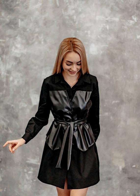 Сукня-сорочка за 730 грн Мод 7080(ніка) Розмір 42-44, 46-48, 50-52 Тканина - еко-шкіра+щільний коттон Сукня-сорочка виконана з корсетом з еко-шкіри , корсет застібається на гудзики ! Тканина не просвещается ! Супер якість! Фото реал ♥️