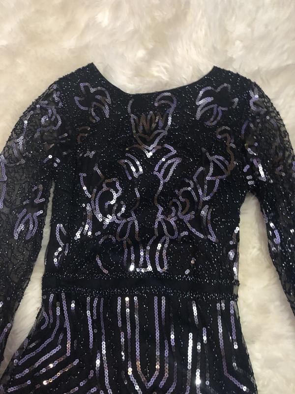 Прекрасне плаття оздоблене паєтками і бісером, гарно виглядає на фігурі, паєтки виблискують під штучним світлом різними відтінками. Це саме ті маленьке чорне плаття))