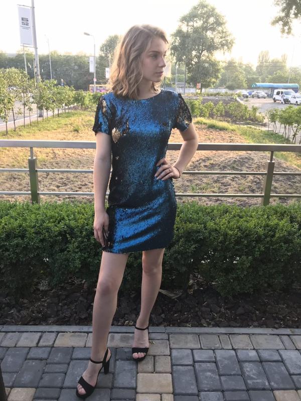Платье в паетках, сине-золотого цвета, размер 40-42, одето 1 раз на выпускной.