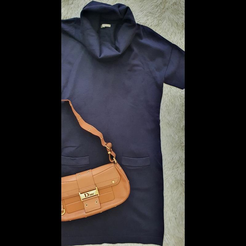 Стильное платье красивый синий цвет размер М или небольшая Л состояние идеальное. из недостатков - потерялся пояс.