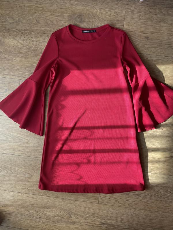 Платье а-силуэт красное свободный крой bershka рукава солнце клёш