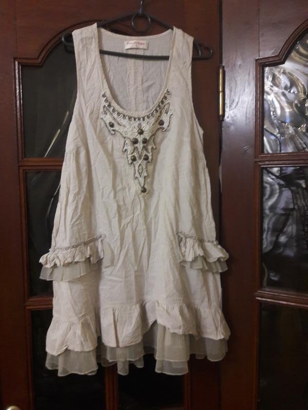 Сукня з тонкого 100 % бавовни. Бренд Miss Selfridge. Колір бежевий. ПОГ 46см, ПОБІДИ 64 см, довжина 90 див.