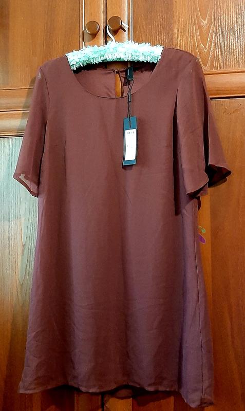 дуже гарне...легке...на підкладці шоколадне плаття по плечах 40 см по грудях 47 см довжина 84 см нове....поліестер
