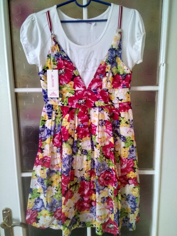 Длина 86, пог 40,пот 35, легко тянется за счёт резинки сзади. Сверху футболочная ткань,а сам сарафан натуральный ситец.