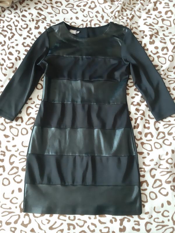 Платье со вставками с эко кожи, состояние отличное, змейка рабочая. Зацепок нет, кожа без трещин