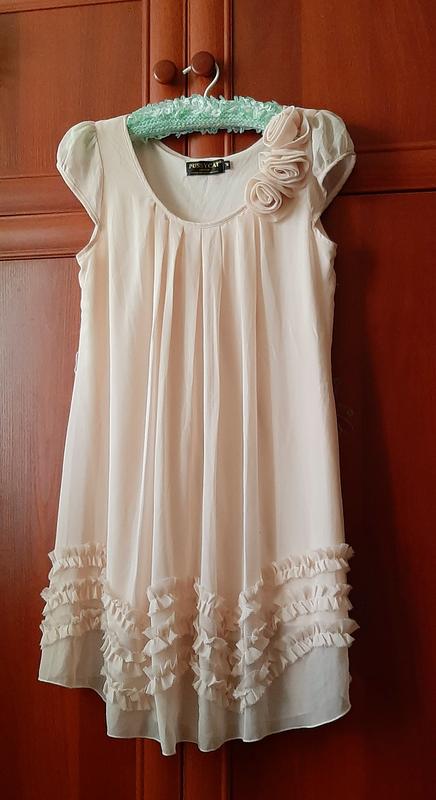 дуже красиве....завжди ошатне...на підкладці.... у такому можна навіть заміж.... по плечах 34 см по грудях 45 см довжина 90 см є шлеечки для пояси по шву маленьке плямочка.... фото додається....
