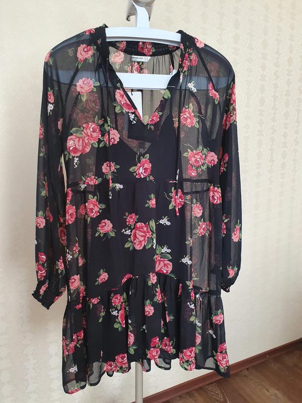 Шифонова сукня, знизу чорна базова сукня - підкладка. Нова, з біркою. Розмір S, довжина 91 див. Не підійшла по розміру, тому не носила