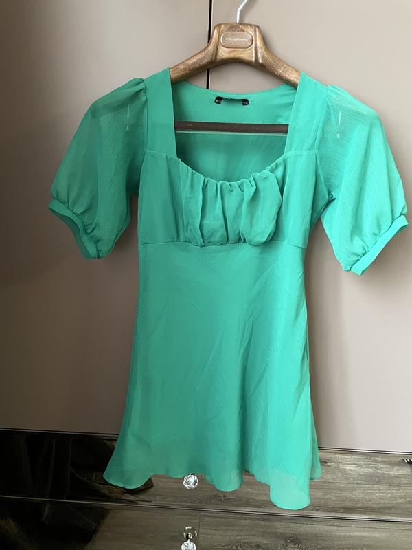 Легкий сарафан в трендовому кольорі зеленки. Довжина 80 см .Круто виглядає під косуху і грубі черевики