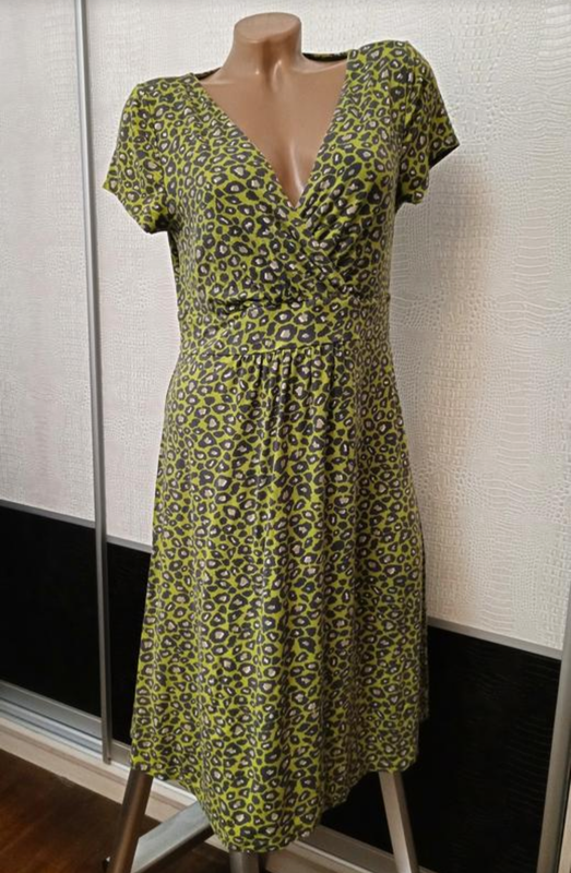 Летний трикотаж. UK 16R US 12R Хорошо тянется. Грудь на запах Поясок под грудью Длина по спинке 102см Плечи 40см Ширина между подмышками 46см По пояску 40см Пот 49см Поб 59см Мерки, не растягивая ткань. 95% viscose 5% elastane