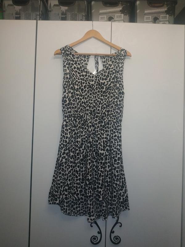 Білий леопард, видовжене сукню ззаду і спереду вкорочене. Розмір 14, я б сказала навіть 10 - 12. Зроблено в Болгарії