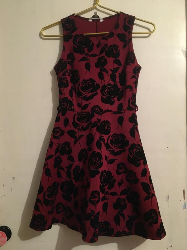 Щільне сукню з велюровими трояндочками. Є невеликі шлейки для пояса.