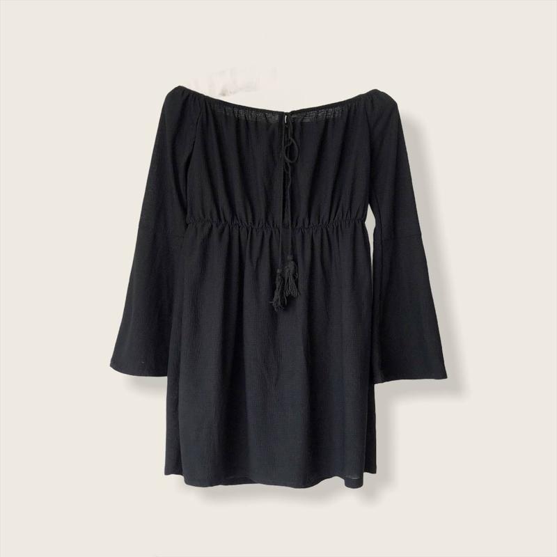 Літній сексі плаття з відкритими плечима, декольте з зав'язками, фактурна тканина, рукави кльош, виглядає супер! Стан ідеальний! ДОВЖИНА 63 ПОГ 41 ПІТ 33 - гумка ПОБІДИ 54 - напівобхват РУКАВА 51