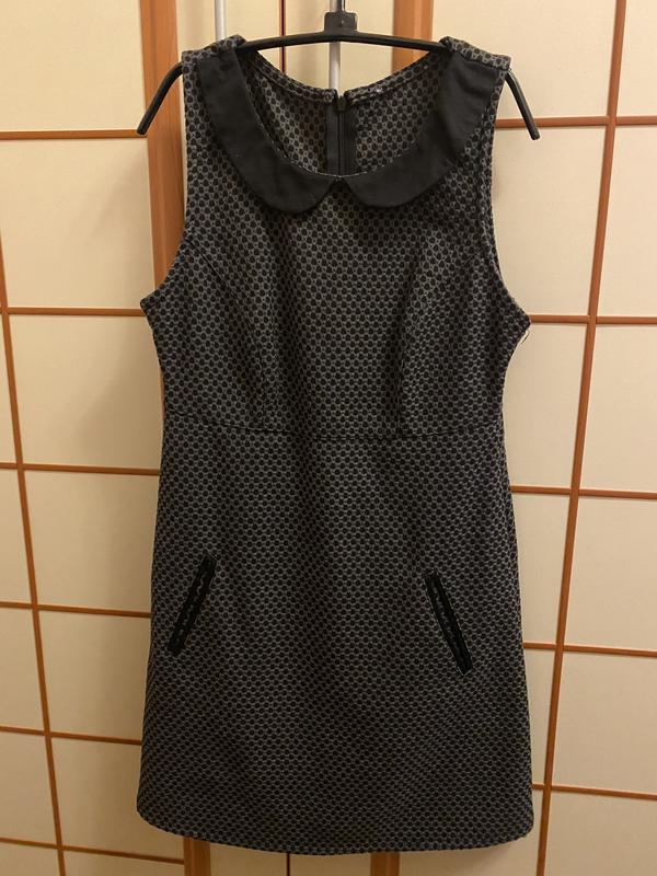 Офисное платье с карманами, приталенное. Подойдёт на размер с-хс. Можно носить как отдельно так и на рубашку, гольфик Очень стильное, никаких изъянов Длинна 80 Обхват талии 38 Обхват бёдер 45 Бирки срезала