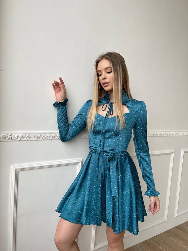 Елегантне шовкове плаття з пишною спідницею💕h Арт 12934 ▫️Розмір: S,M ▫️Тканина: прінтованний шовк армані 🛒ВІДПРАВКА замовлення 1-5 раб. дня! ⠀