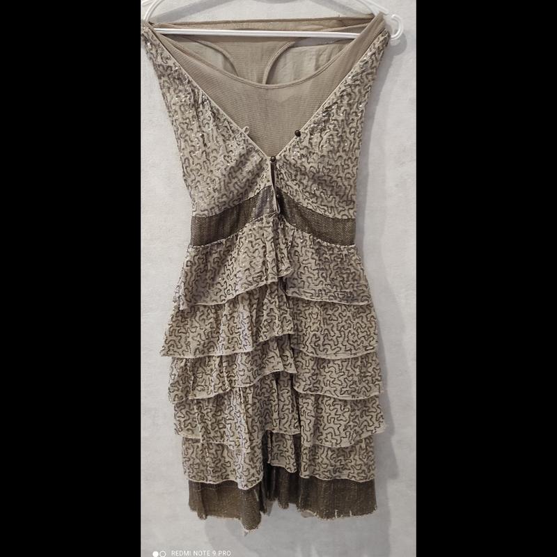 Оригінальне золотисте італійське сукню без рукавів і з воланами, до нього йде маєчка сіточкою
