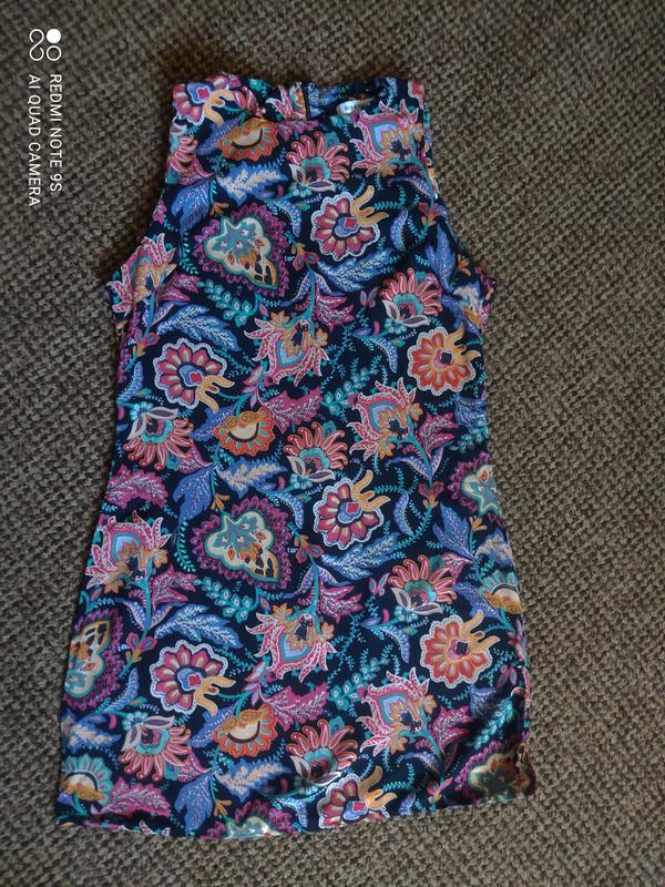 Легке, яскраве літнє плаття. Ззаду замок по всій довжині спини. Довжина по спинці-76см, пог-42см, пот-39див, побіди-46см, плаття трохи тягнеться.