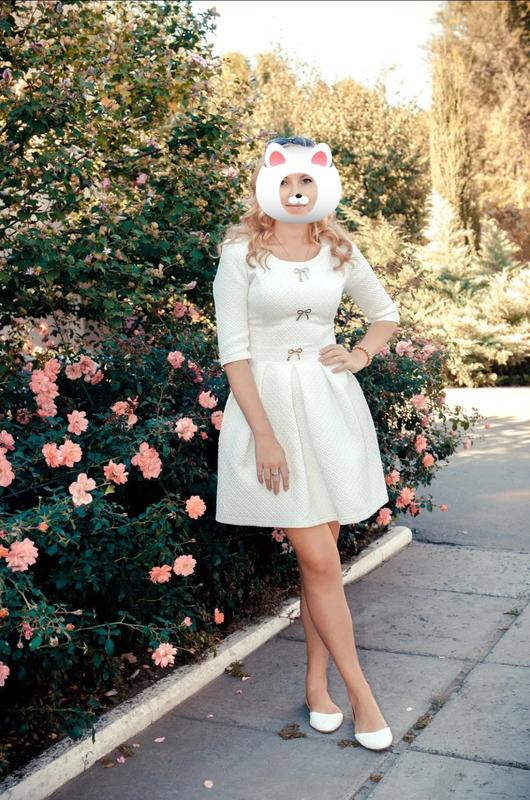 Ошатна біла сукня,бантики можна зняти, розмір 38,довжина 90см, груди 85-90см,талія 72-74см,рукав 38см,стегна вільно,ззаду блискавка 43см