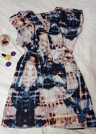 12.Лёгкое платье на псевдо-запа́хе с воланом. Реальный цвет на втором фото на вешалке. Размер указан Eur 40, US 10, Cn 170/ 92A Подойдёт как на М(оверсайз), так и на L, XL. Есть шнурочки для вставки пояса (на фото). Замеры: Длина изделия 88 см ПОГ 57 см ПОТ 44 см ПОБ 56 см Ширина плечей (до выреза рукава) 59 см Вырез рукава 24 см